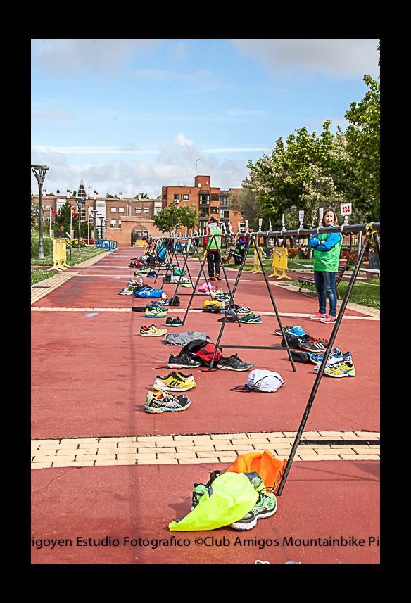 No se podrá ir montado en bicicleta en la zona especificada para las transiciones, cuya zona será también la de relevos, siendo el único sitio donde se hará la entrega del dorsal a la pareja.